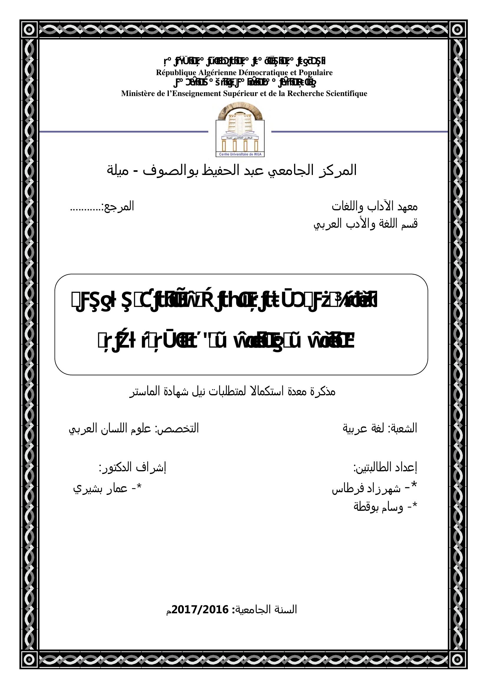 فرطاس شهرزاد & بشيري عمار (مشرفا) (2017). التقابل في مسردية الأديب عز الدين جلاوجي '' التاعس والناعس دراسة بلاغية.