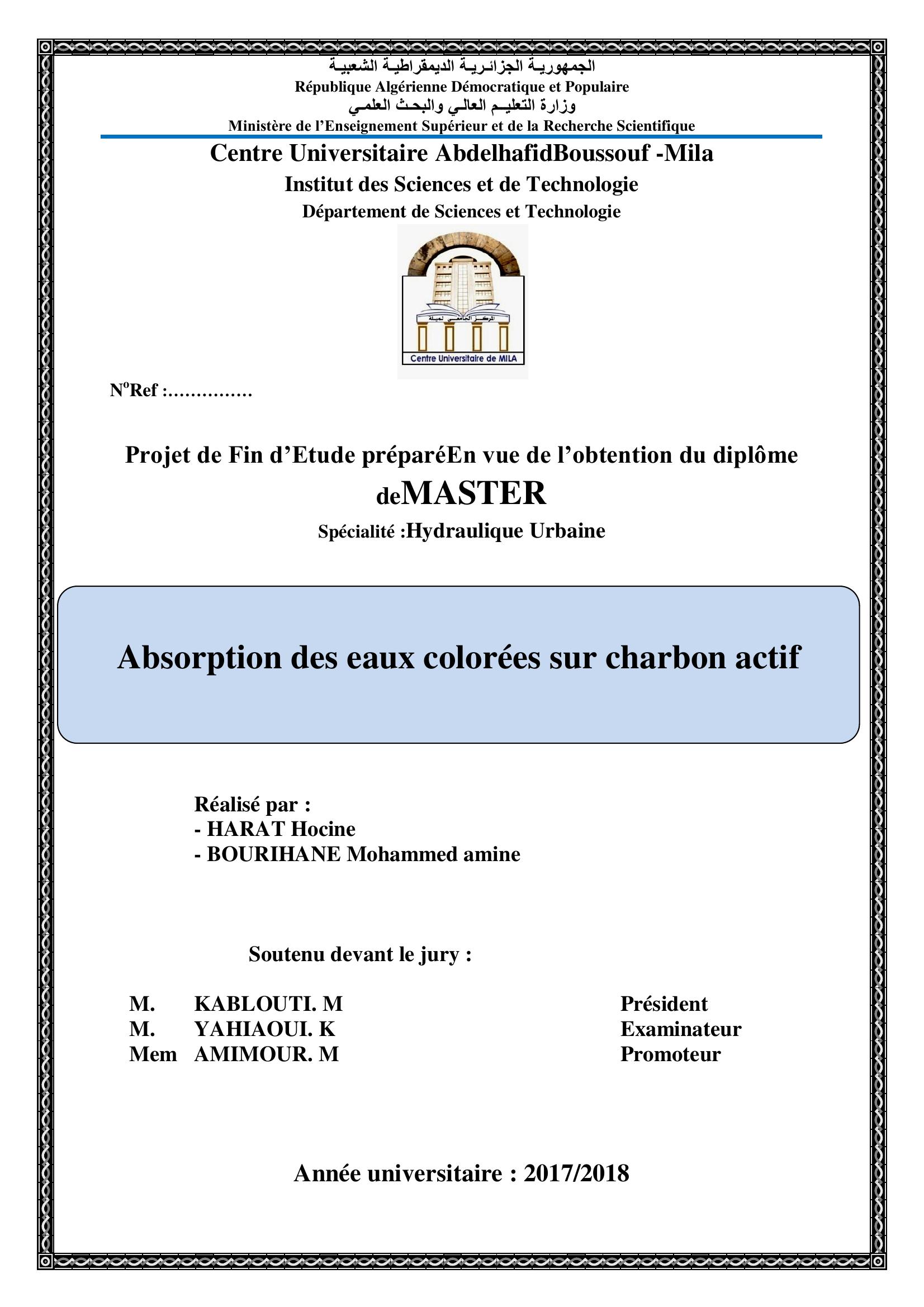 Harat hocine & M.keblouti.M (président), M. (2018). Absorption des eauxcolorées sur charbon actif.
