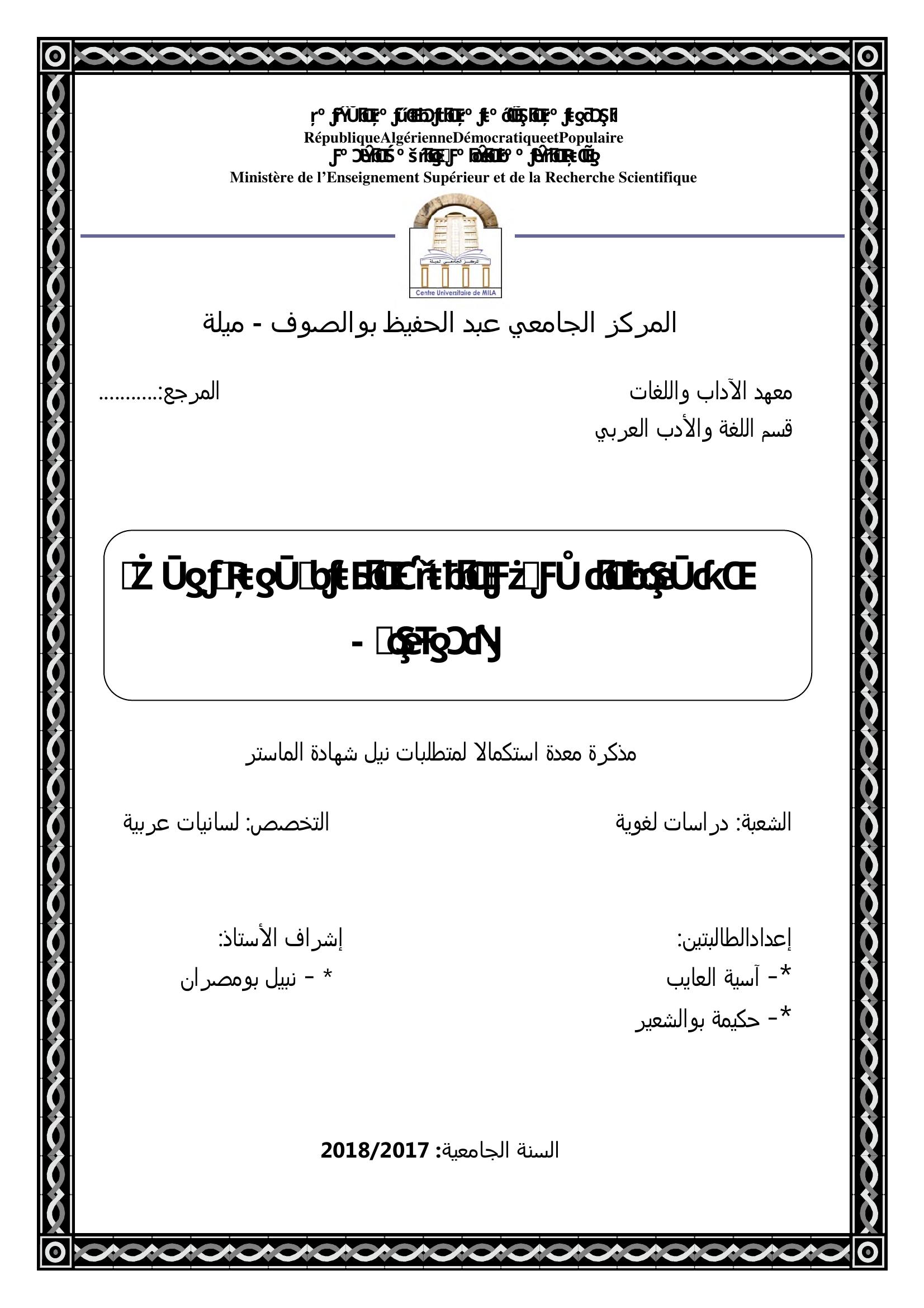 العايب آسية & بومصران نبيل (مشرفا) (2018). الإنسجام النصي في القرآن الكريم سورة يوسف أنموذجا.