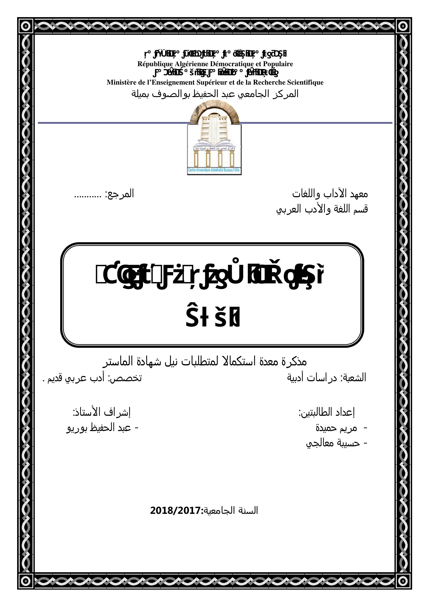 حميدة مريم & بوريو عبد الحفيظ (مشرفا) (2018). تجليات الصوفية في ديوان الحلاج.