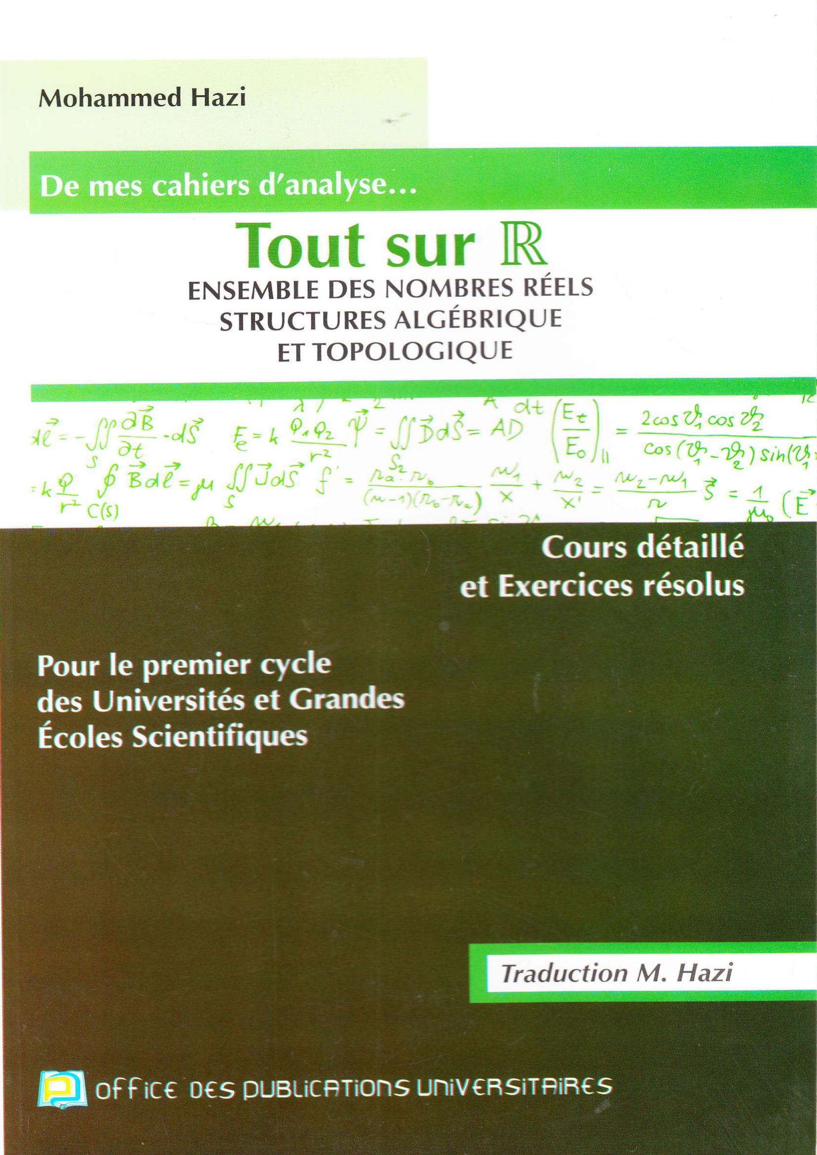 mohammed Hazi (2017). Tout sur R ensemble des nombres réels structures algébrique et topologique (1.éd) . office des publications universitaires;