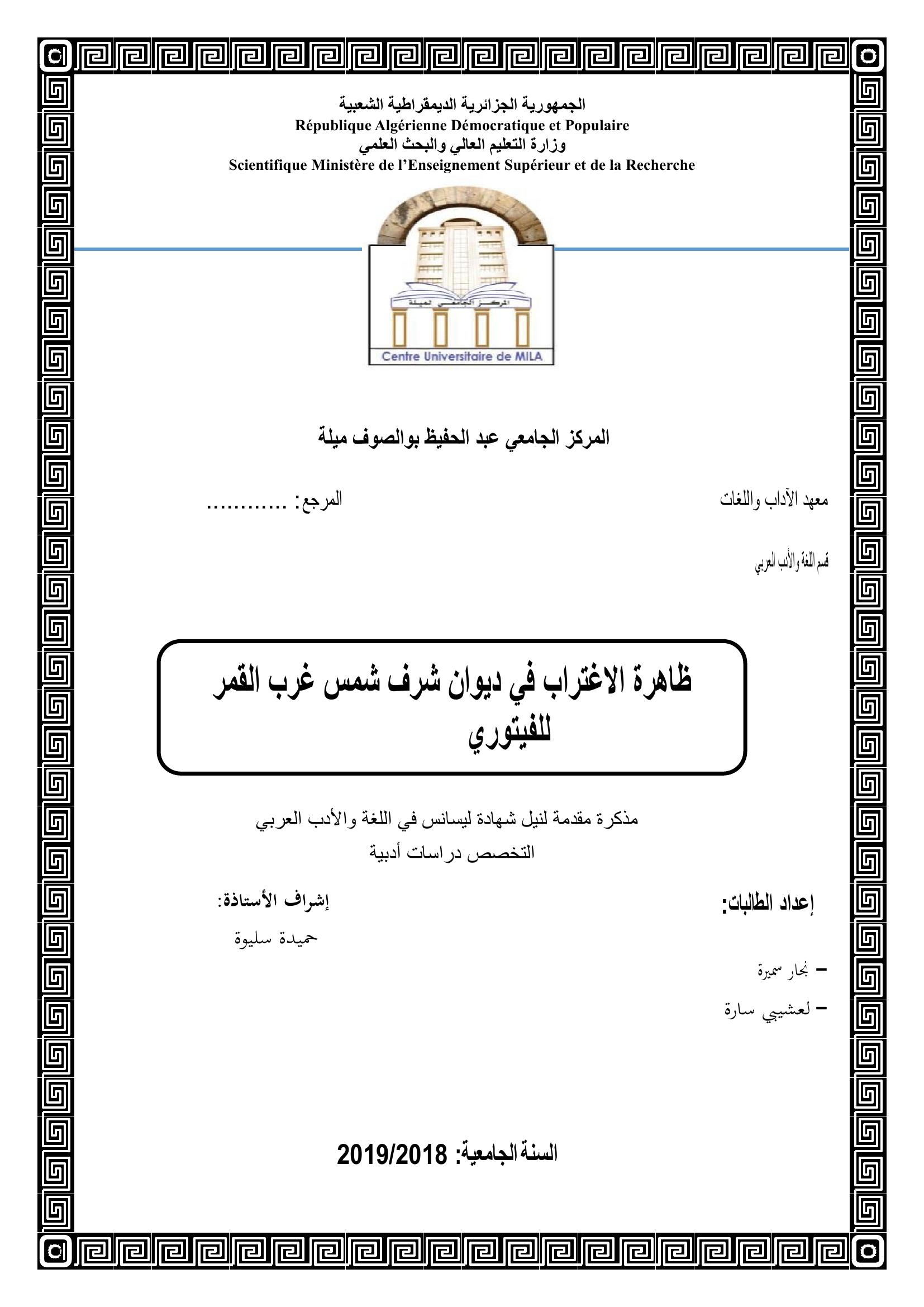نجار سميرة & سليوة حميدة(مشرفا) (2019). ظاهرة الإغتراب في ديوان شرف شمس غرب القمر للفيتوري.