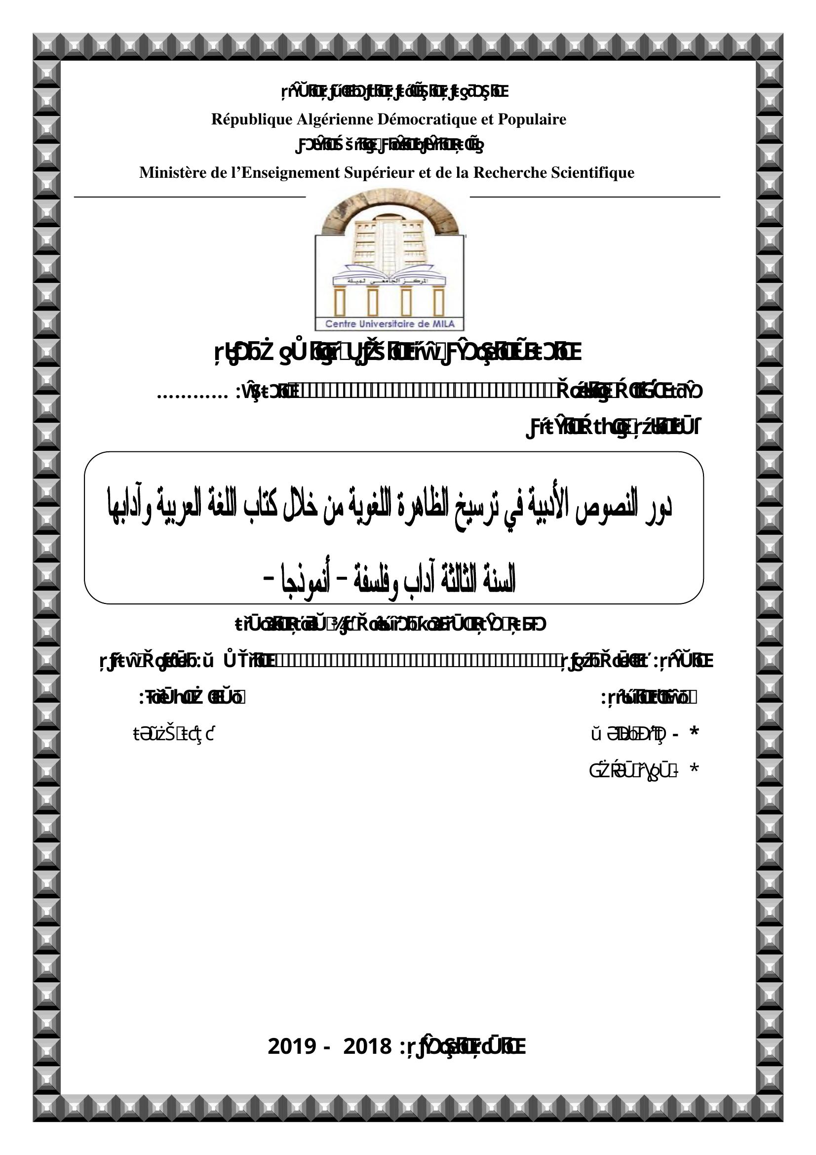 لكنوش حنان & جغرود محمد (مشرفا) (2019). دور النصوص الادبية في ترسيخ الظاهرة اللغوية من خلال كتاب اللغة العربية وادابها السنة الثالثة اداب وفلسفة -انمودجا.