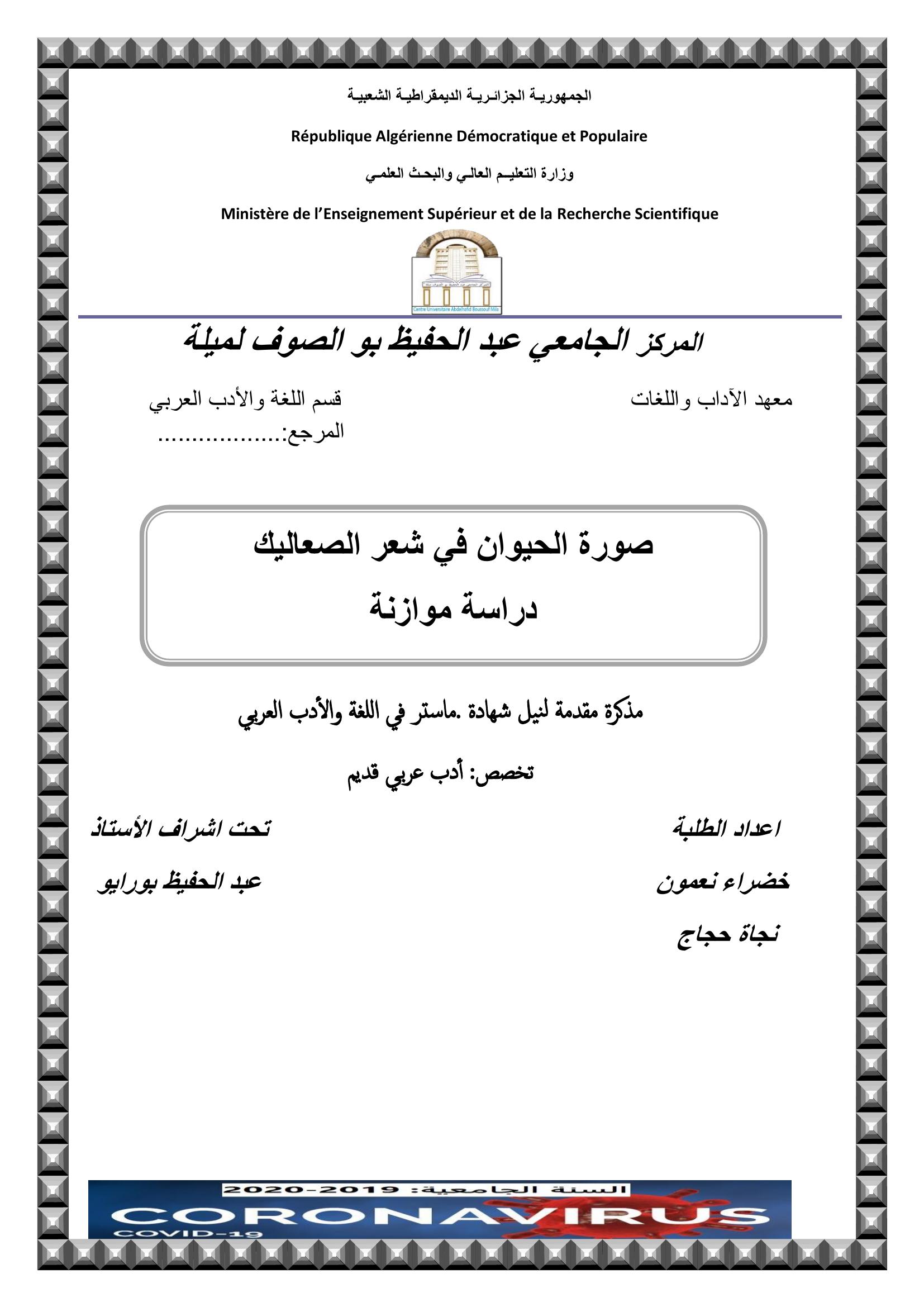 نعمون خضراء et al. (2020). صورة الحيوان في شعر الصعاليك :دراسة موازنة.