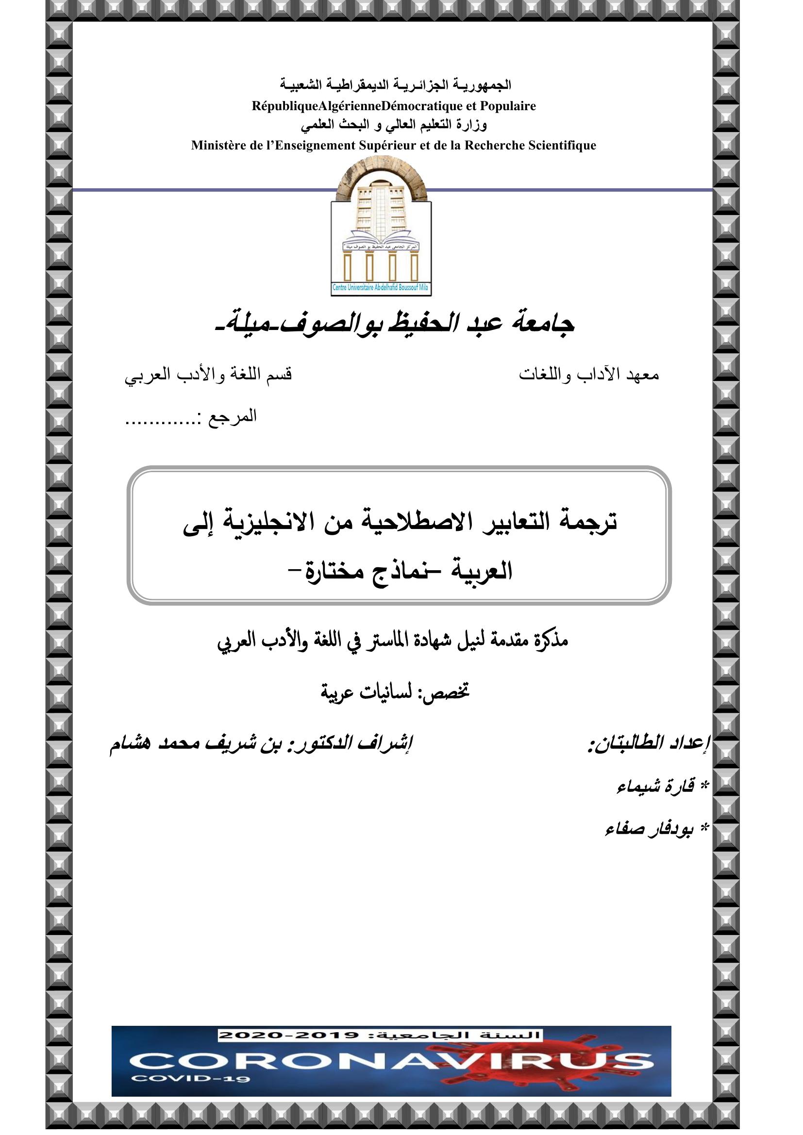 قارة شيماء et al. (2020). ترجمة التعابير الاصطلاحية من الإنجليزية إلى العربية -نمادج مختارة-.