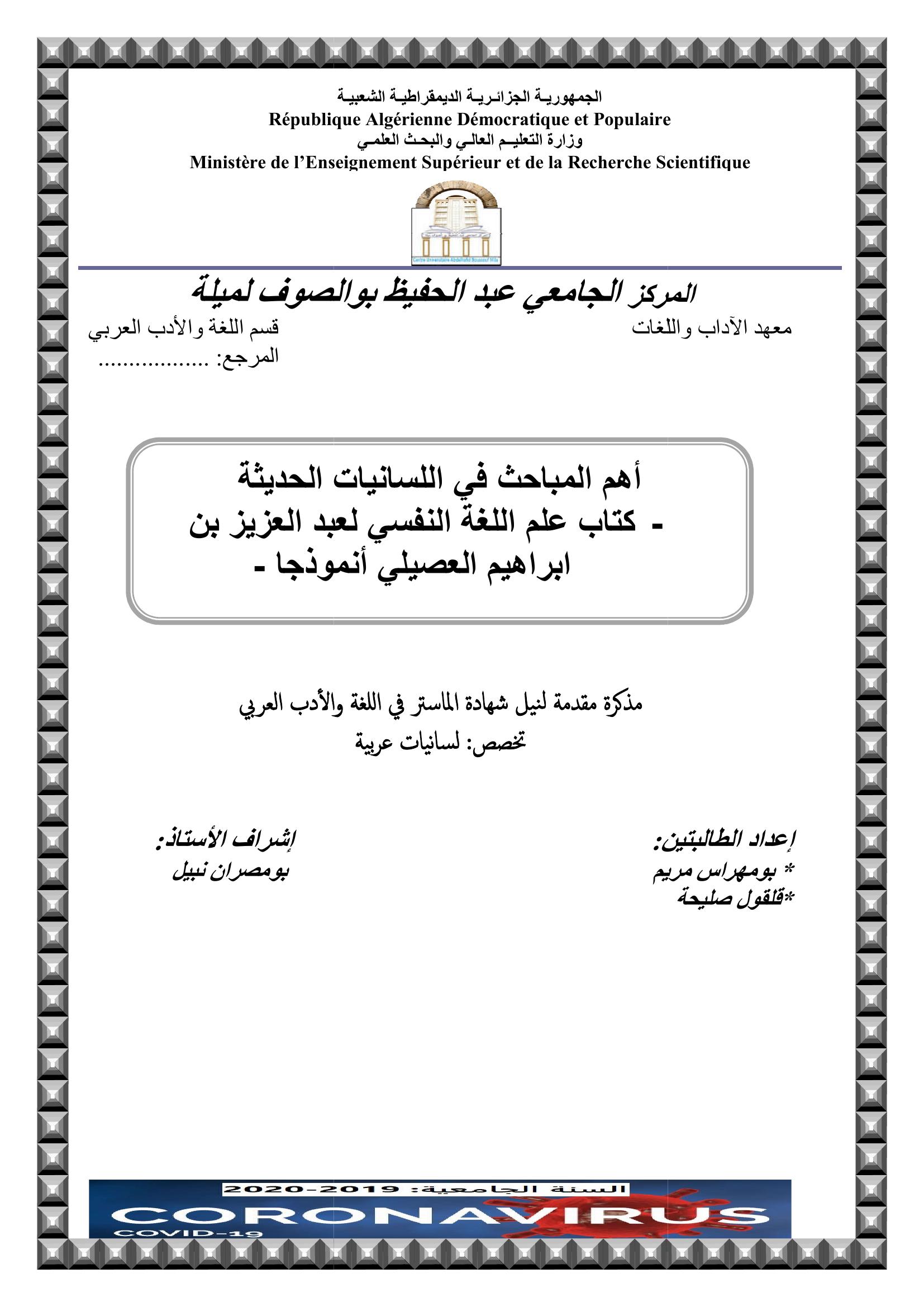 بومهراس مريم et al. (2020). أهم المباحث اللسانية الحديثة -كتاب علم اللغة النفسي لعبد العزيز بن إبراهيم.