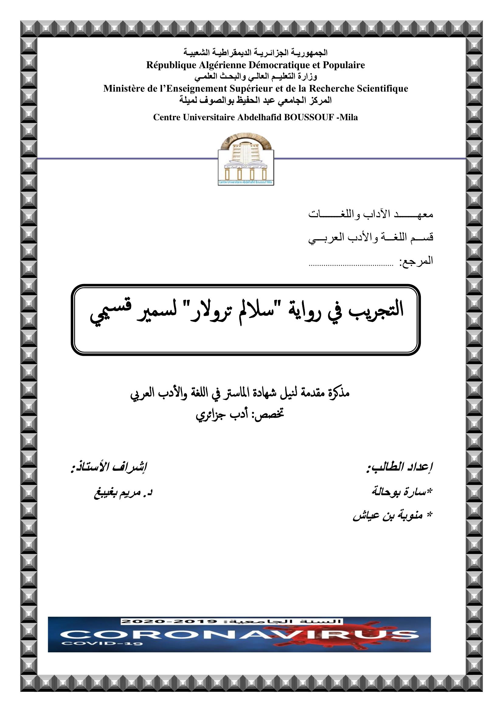 بن عياش منوبة et al. (2020). التجريب في رواية"سلالم ترولار"لسمير قسيمي.