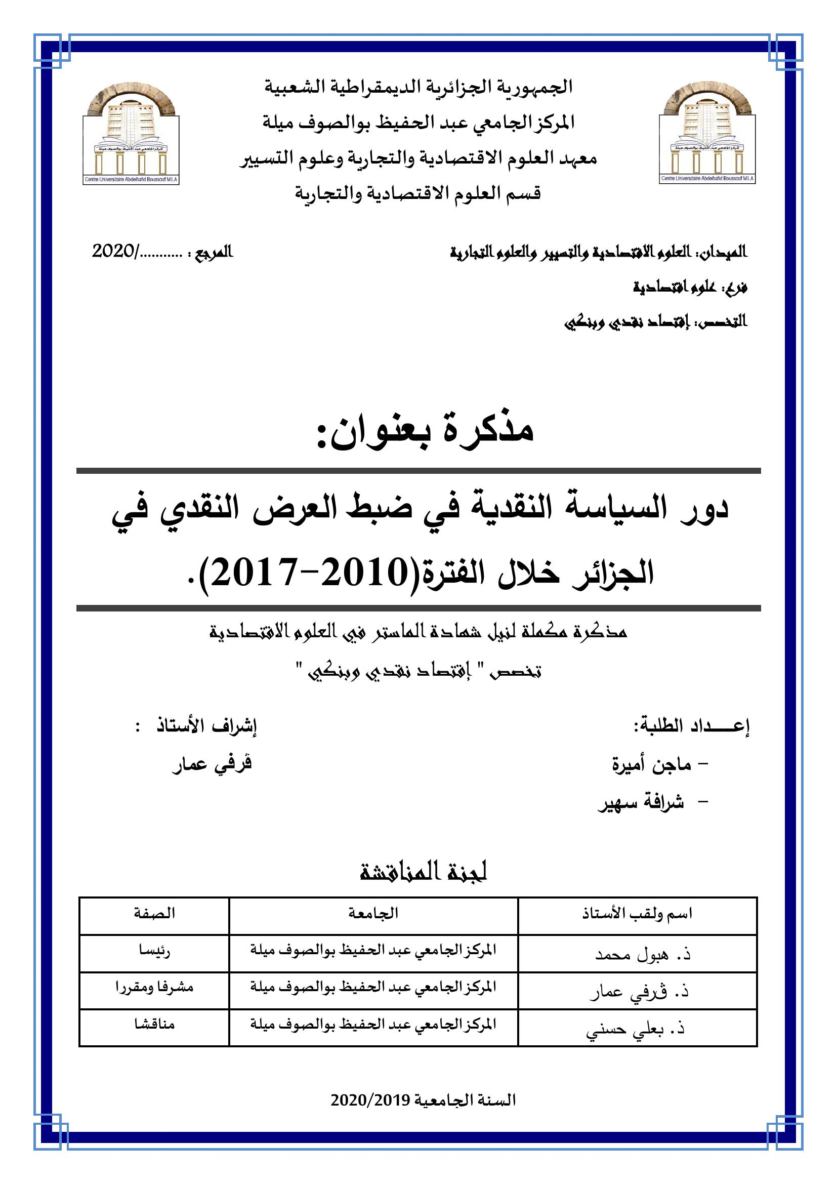 ماجن أميرة et al. (2020). دور السياسة النقدية في ضبط العرض النقدي.