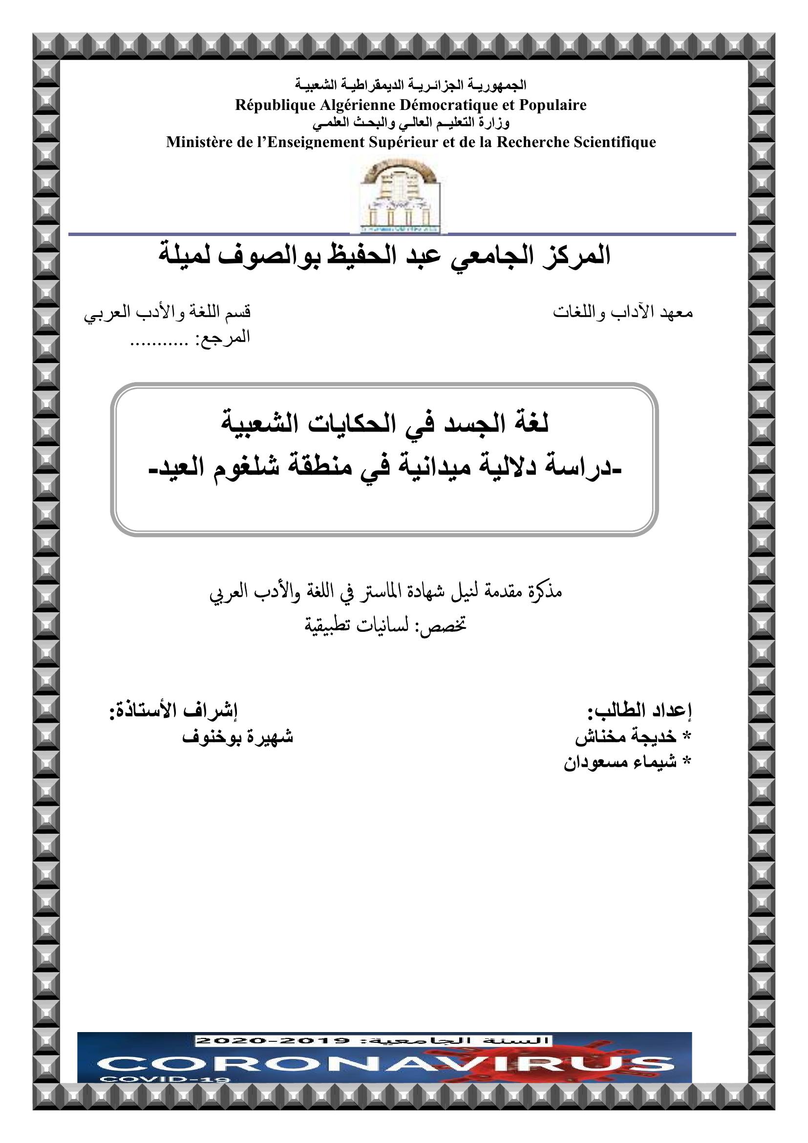 مخناش خديجة et al. (2020). لغة الجسد في الحكايات الشعبية دراسة دلالية ميدانية في منطقة شلغوم العيد.