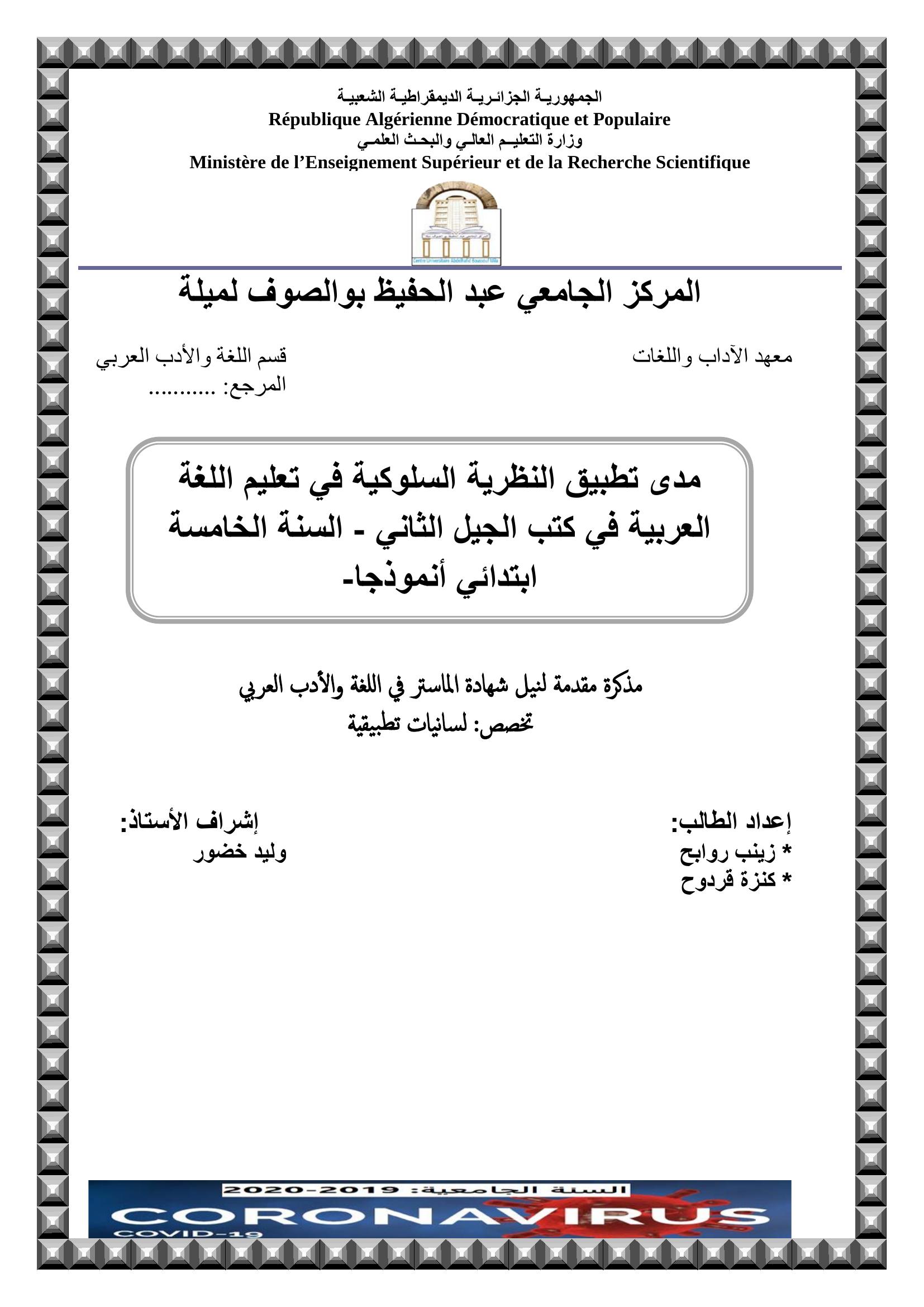مدى تطبيق النظرية السلوكية في تعليم اللغة العربية في كتب الجيل الثاني - السنة الخامسة إبتدائي-