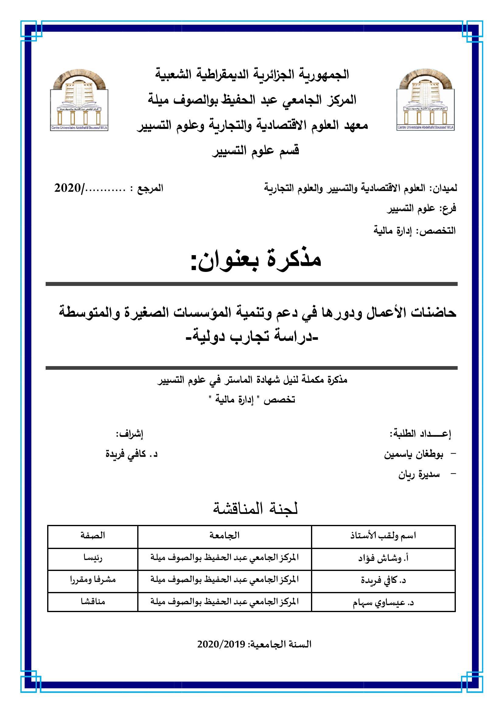 سديرة ريان et al. (2020). حاضنة الأعمال ودورها في دعم وتنمية المؤسسات الصغيرة والمتوسطة.