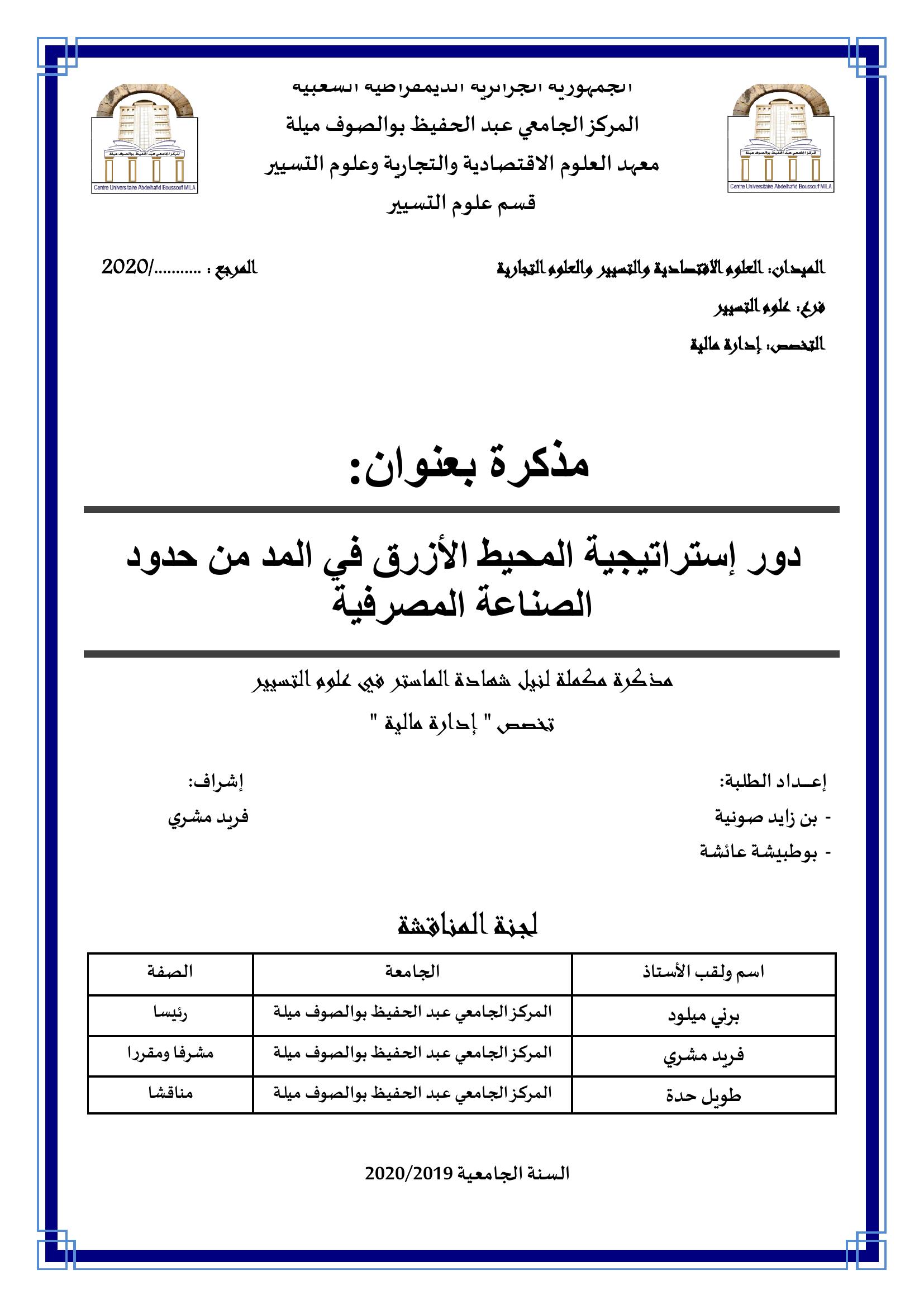 بن زايد صونية et al. (2020). دور إستراتيجية المحيط الأزرق في المد من حدود الصناعة المصرفية.