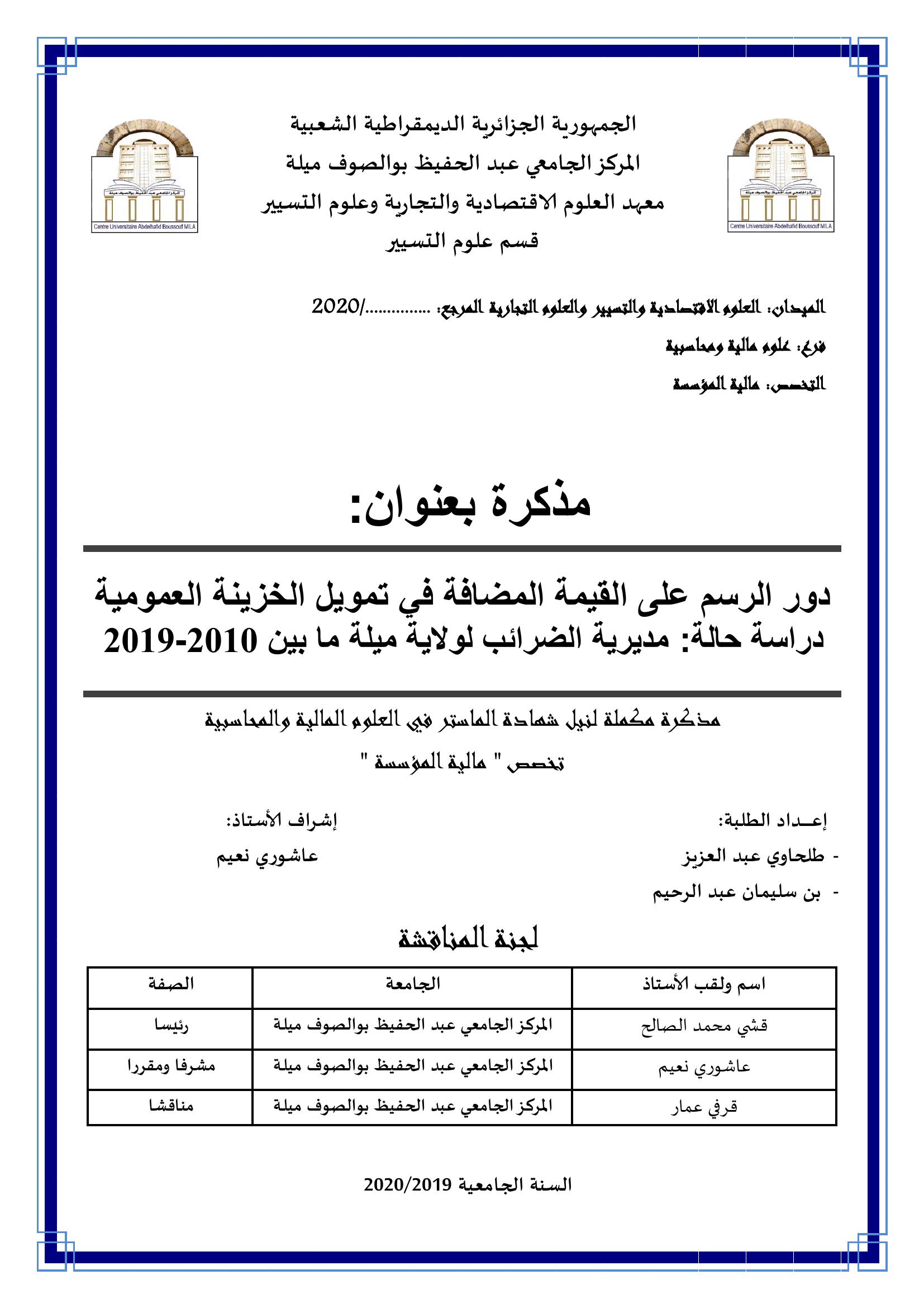 بن سليمان عبد الرحيم et al. (2020). دور الرسم على القيمة المضافة في تمويل الخزينة العمومية.