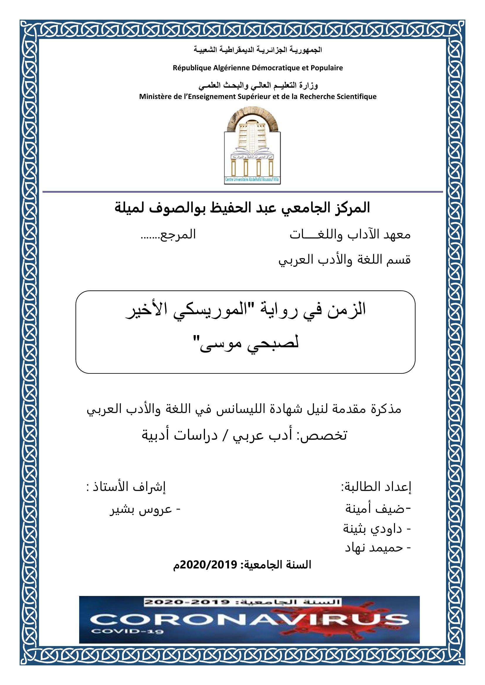 ضيف أمينة et al. (2020). الزمن في رواية "الموريسكي الأخير لصبحي موسى".
