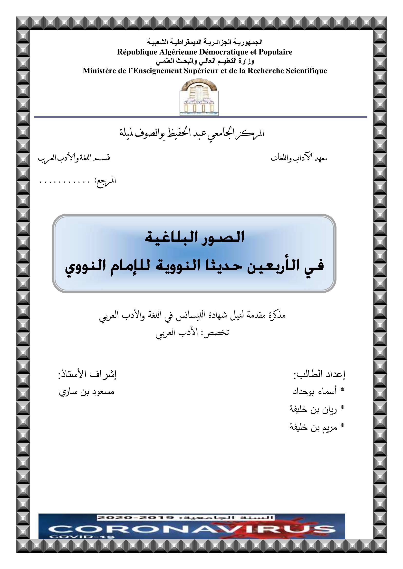 بوحداد أسماء et al. (2020). الصور البلاغية في الأربعين حديثا النووية للإمام النووي.