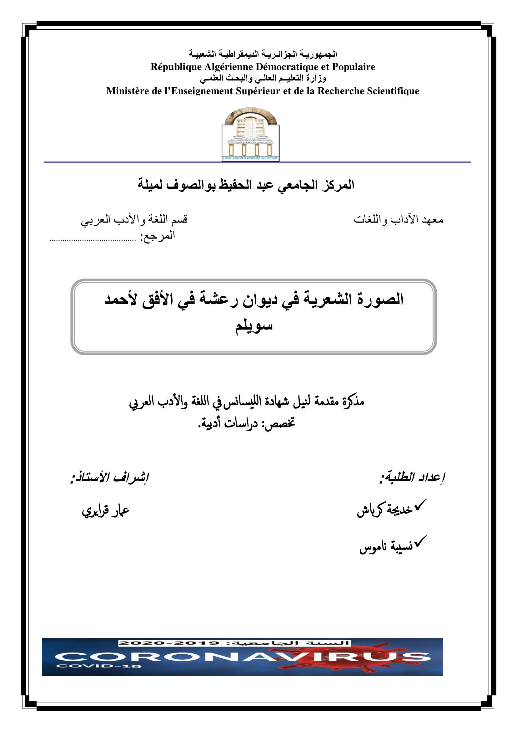 كرباش خديجة et al. (2020). الصورة الشعرية في ديوان رعشة في الأفق لأحمد سويلم.