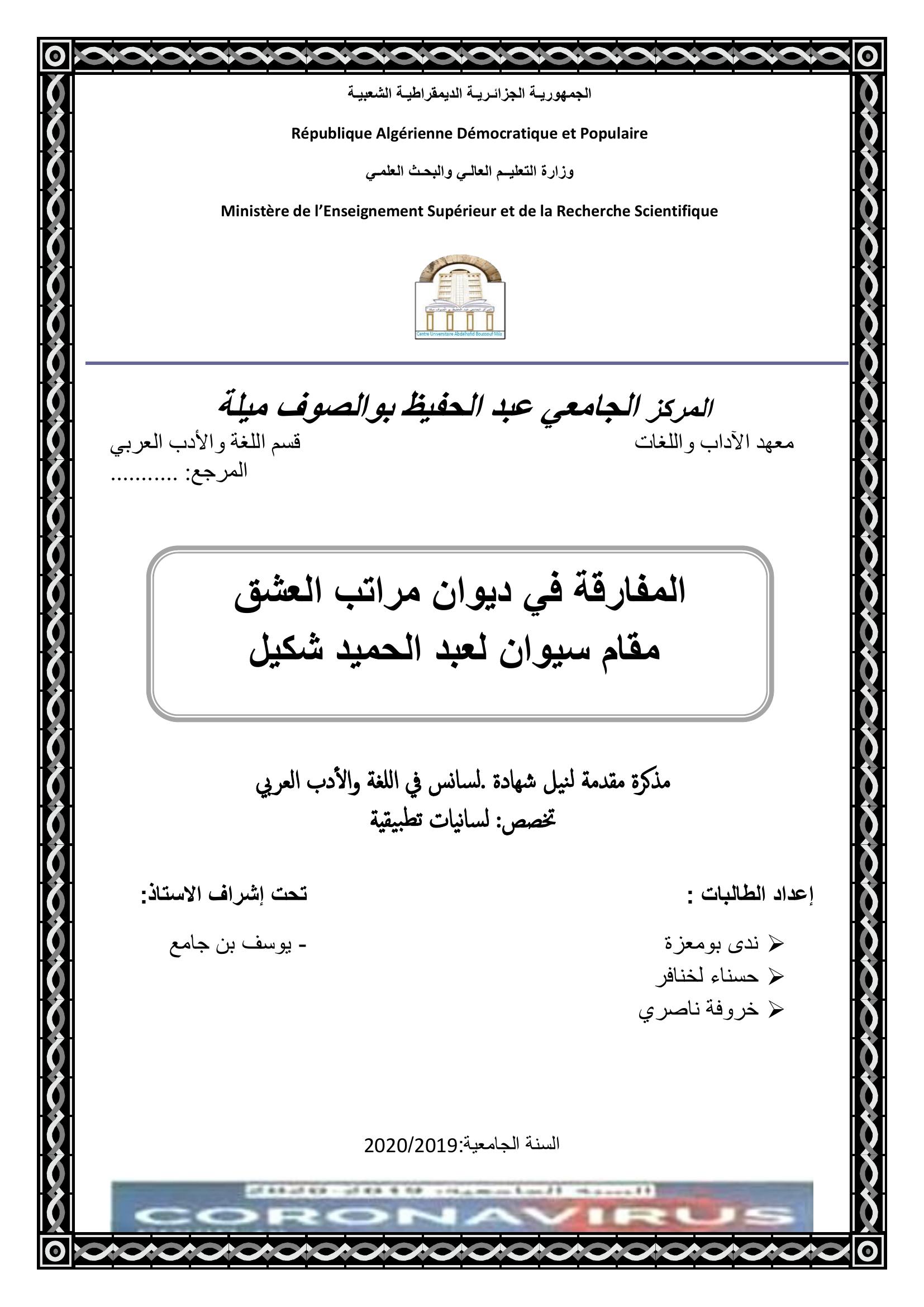 بومعزة ندى et al. (2020). المفارقة في ديوان" مراتب العشق" مقام سلوان لعبد الحميد شكيل.
