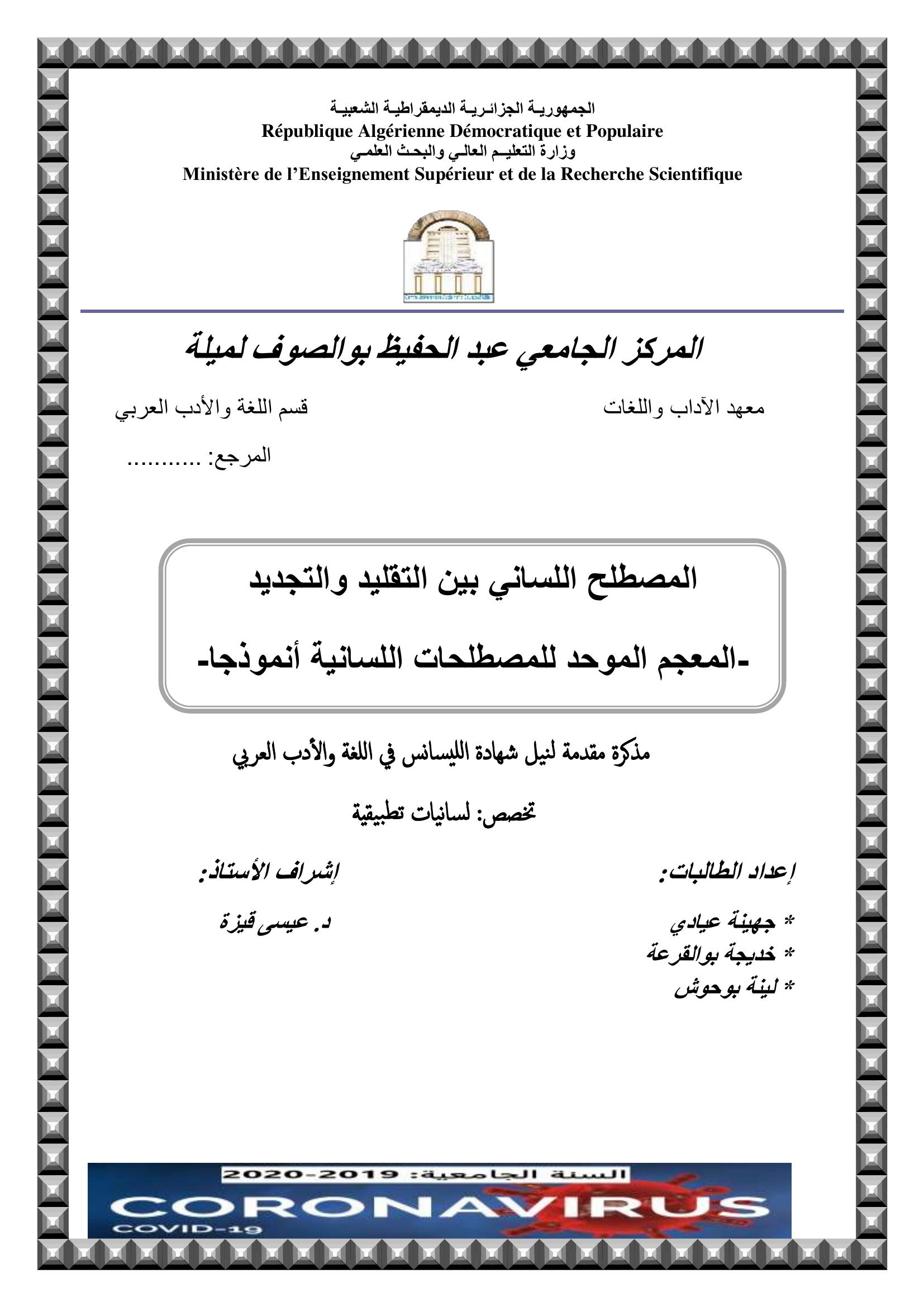 بوالقرعة خديجة et al. (2020). المصطلح اللساني بين التقليد و التجديد-المعجم الموحد للسانيات أنموذجا-.