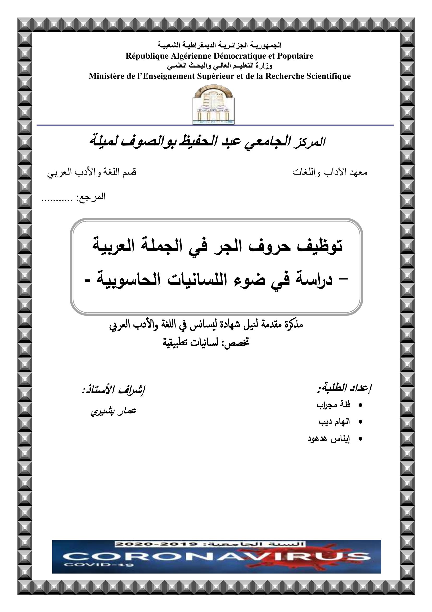مجراب فلة et al. (2020). توظيف حروف الجر في الجملة العربية -دراسة في ضوء اللسانيات الحاسوبية.