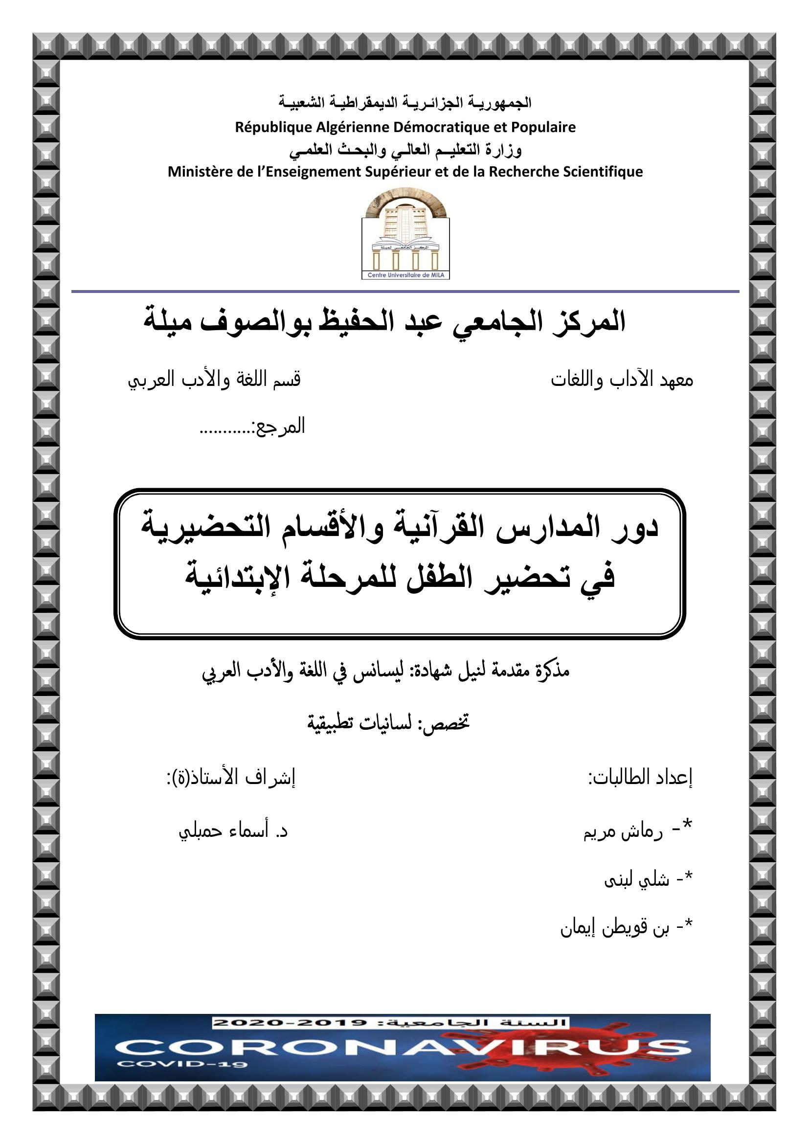 رماش مريم et al. (2020). دور المدارس القرآنية و الأقسام التحضيرية في تحضير الطفل للمرحلة الإبتدائية.