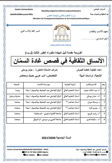 The literary discourse has been dealt with in different ways, all of which were outlined at the outset on the contextual aspects according to psychological, historical, and social approaches in an attempt to find out the aesthetics of the text. However, this has excluded the artistry of language, so new theories have established this structure through systematic approaches. They enclosed the text and isolated it from the environment that it produced, based on the cognitive frameworks and basic concepts of linguistics and considering the text as an independent unit. Thus, they eliminated the role of the author and the context, prompting critics to search for new outlets that give the text an outlet through which to make its aesthetics and artistry and give different connotations. الملخّص The cultural criticism is one of the most prominent postmodern critical strategy that appeared in the critical arena and came as a response to the structural approaches that viewed the literary text as a linguistic body, in which it starts from the text and returns to it to nullify the author’s role and the context that contributed to the formation of these linguistic structures. The cultural criticism gave a new reading to the literary text closed to its linguistic structure, and it opened up to its cultural component and thus became a cultural incident whose its explanation and interpretation returns to the context that produced it. The literary text has transcended its aesthetic artistic value, and has become a cultural component that considers the systems that contributed to its formation, which are hidden behind the linguistic aesthetic and are implicit and hide the flaws of the culture. The cultural criticism acts as a procedure of digging into the texts and elucidating the cultural systems that have controlled the ideas and the mentalities and leaked through their hegemony into the texts. It takes from the culture component its material, including manifestations, behavior, beliefs, arts, and literature. Nevertheless, it attaches importance to the marginal who was excluded by the institution or the literary approaches that focused on the aesthetics of the text itself, considering this criticism came in a postmodern period that dislocated the general order, and has undermined the center and brought the margin to the fore, taking a space for it in critical studies, and from this literature, it is the feminist literature. The feminist writing was associated with struggling movements that led women to claim their material and social rights at the beginning, and then sought the equality with men in all rights. So, for this reason the content of these narratives changed in different and successive periods, as their concern in the beginning was to achieve themselves and their existence and to keep pace with the man’s writing, and then seek to contradict the male model and search for a text whose content is the woman’s concerns and problems; This text was the one which bore its privacy and raged around the debate and the controversy.