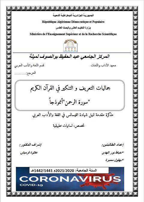 خياط نور الهدى et al. (2021). جماليات التعريف والتنكير في القرآن الكريم سورة الرحمن انمودجا (ليسانس- ل م د) . المركز الجامعي عبد الحفيظ بوالصوف ميلة.