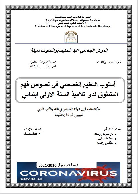 بن حومار رجاء et al. (2021). أسلوب التعليم القصصي في نصوص فهم المنطوق لدى تلاميذ السنة الأولى ابتدائي (ليسانس- ل م د) . المركز الجامعي عبد الحفيظ بوالصوف ميلة.