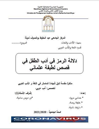 حمامي مروة et al. (2021). دلالة الرمز في أدب الطفل في قصص لطيفة عثماني (ليسانس- ل م د) . المركز الجامعي عبد الحفيظ بوالصوف ميلة.