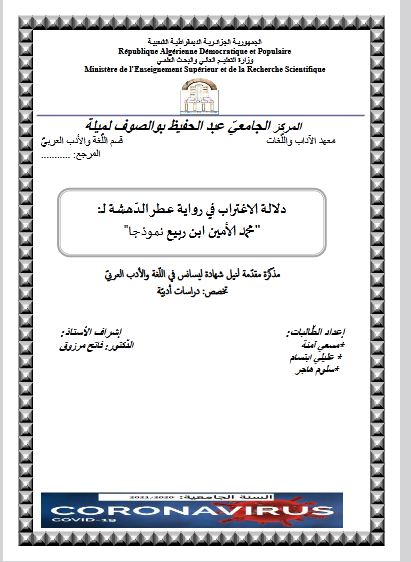 مسعي آمنة et al. (2021). دلالة الإغتراب في رواية عطر الدهشة لمحمد الامين ابن ربيع نمودجا (ليسانس- ل م د) . المركز الجامعي عبد الحفيظ بوالصوف ميلة.