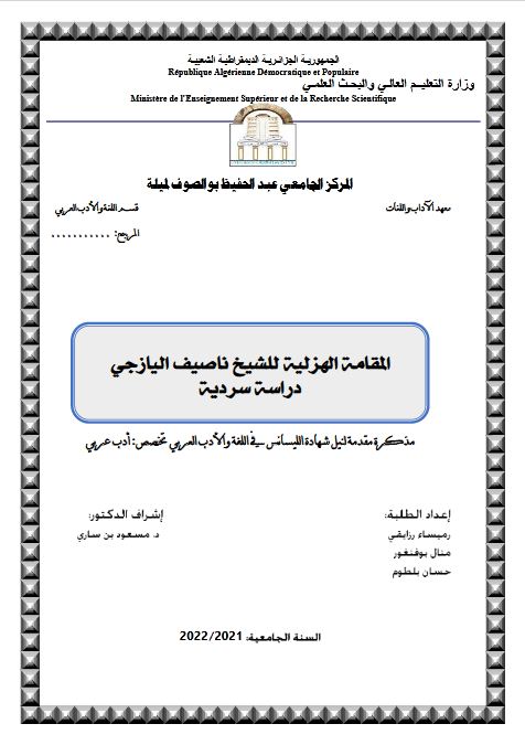 رزايقي رميساء et al. (2021). المقامة الهزلية للشيخ ناصيف اليازجي دراسة سردية (ليسانس- ل م د) . المركز الجامعي عبد الحفيظ بوالصوف ميلة.