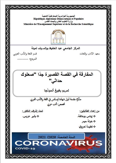 بوخالفة إيناس et al. (2021). المفارقة في القصة القصيرة جدا صعلوك حداثي لمريم بغيبغ انمودجا (ليسانس- ل م د) . المركز الجامعي عبد الحفيظ بوالصوف ميلة.