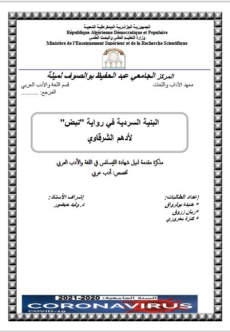 بولرواق هنيدة et al. (2021). البنية السردية في رواية نبض لأدهم الشرقاوي (ليسانس- ل م د) . المركز الجامعي عبد الحفيظ بوالصوف ميلة.