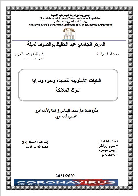 رزايقي نجوى et al. (2021). البنيات الأسلوبية لقصيدة وجوخ ومرايا نازك الملائكة (ليسانس- ل م د) . المركز الجامعي عبد الحفيظ بوالصوف ميلة.