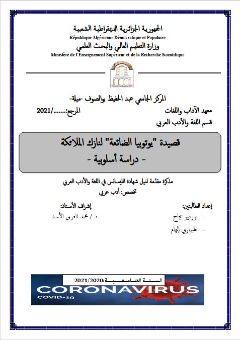 بوزقيو نجاح et al. (2021). قصيدة يوتوبيا الضائعة لنازك الملائكة دراسة أسلوبية (ليسانس- ل م د) . المركز الجامعي عبد الحفيظ بوالصوف ميلة.
