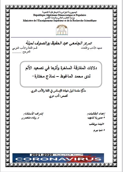 خلاف أماني et al. (2021). دلالات المفارقة الساخرة وأثرها في تصعيد ألم الإغتراب لدى محمد الماغوط (ليسانس- ل م د) . المركز الجامعي عبد الحفيظ بوالصوف ميلة.