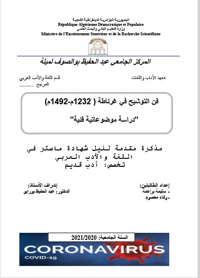 براهمة سليمة et al. (2021). فن التوشيح في غرناطة (1232-1492) دراسة موضوعاتية فنية (ماستر- ل م د) . المركز الجامعي عبد الحفيظ بوالصوف ميلة.