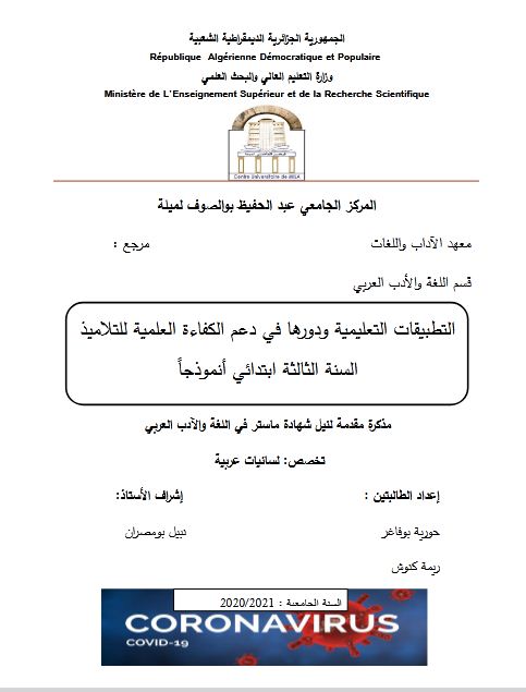 بوفاغر حورية et al. (2021). التطبيقات التعليمية ودورها في دعم الكفاءة العلمية للتلاميذ السنة الثالثة ابتدائي انمودجا (ماستر- ل م د) . المركز الجامعي عبد الحفيظ بوالصوف ميلة.
