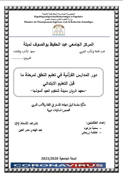 مزهود سمية et al. (2021). دور المدارس القرآنية في تعليم النطق لمرحلة ماقبل التعليم الابتدائي (ماستر- ل م د) . المركز الجامعي عبد الحفيظ بوالصوف ميلة.
