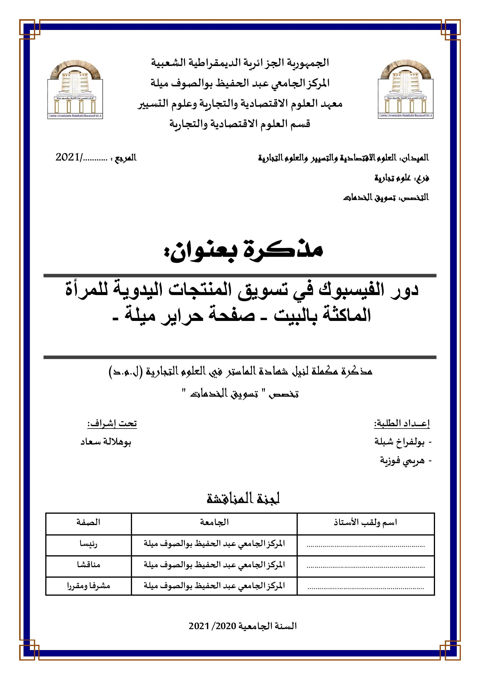 دور الفيسبوك في تسويق المنتجات اليدوية للمرأة الماكثة بالبيت صفحة حراير ميلة
