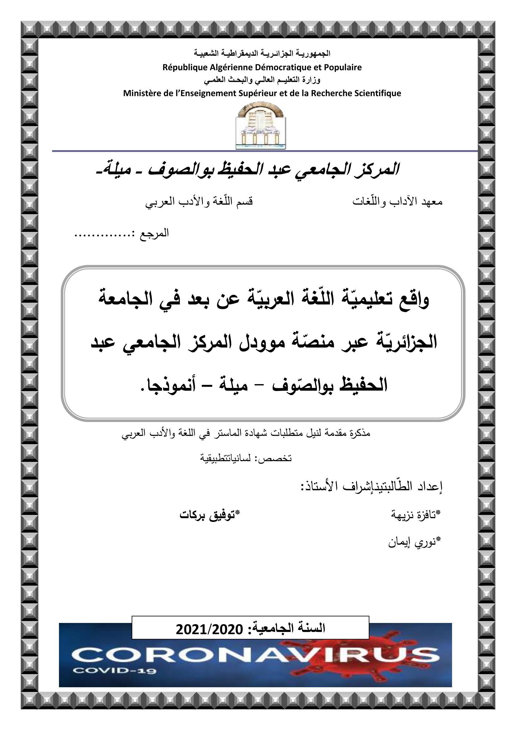 واقع تعليمية اللغة العربية عن بعد في الجامعة الجزائرية عبر منصة مودل المركز الجامعي عبد الحفيظ بوالصوف ميلة انمودجا