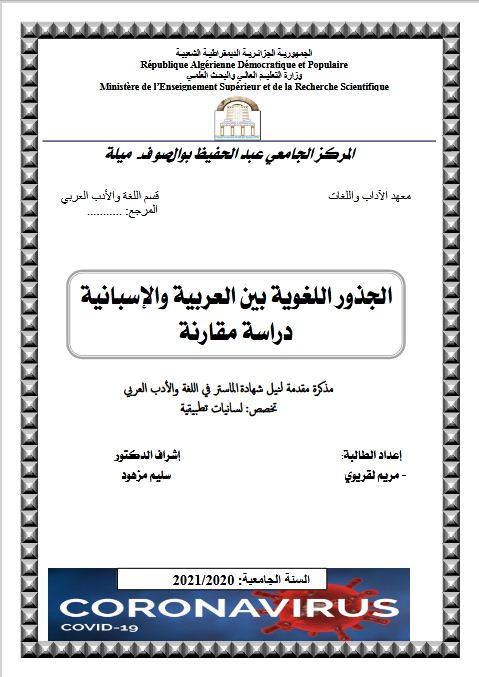 لقريوي مريم & مزهود سليم (مشرفا) (2021). الجذور اللغوية بين العربية والاسبانية دراسة مقارنة (ماستر- ل م د) . المركز الجامعي عبد الحفيظ بوالصوف ميلة.