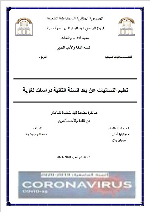 بوغرارة آمال et al. (2021). تعليم اللسانيات عن بعد السنة الثانية دراسات لغوية (ماستر- ل م د) . المركز الجامعي عبد الحفيظ بوالصوف ميلة.