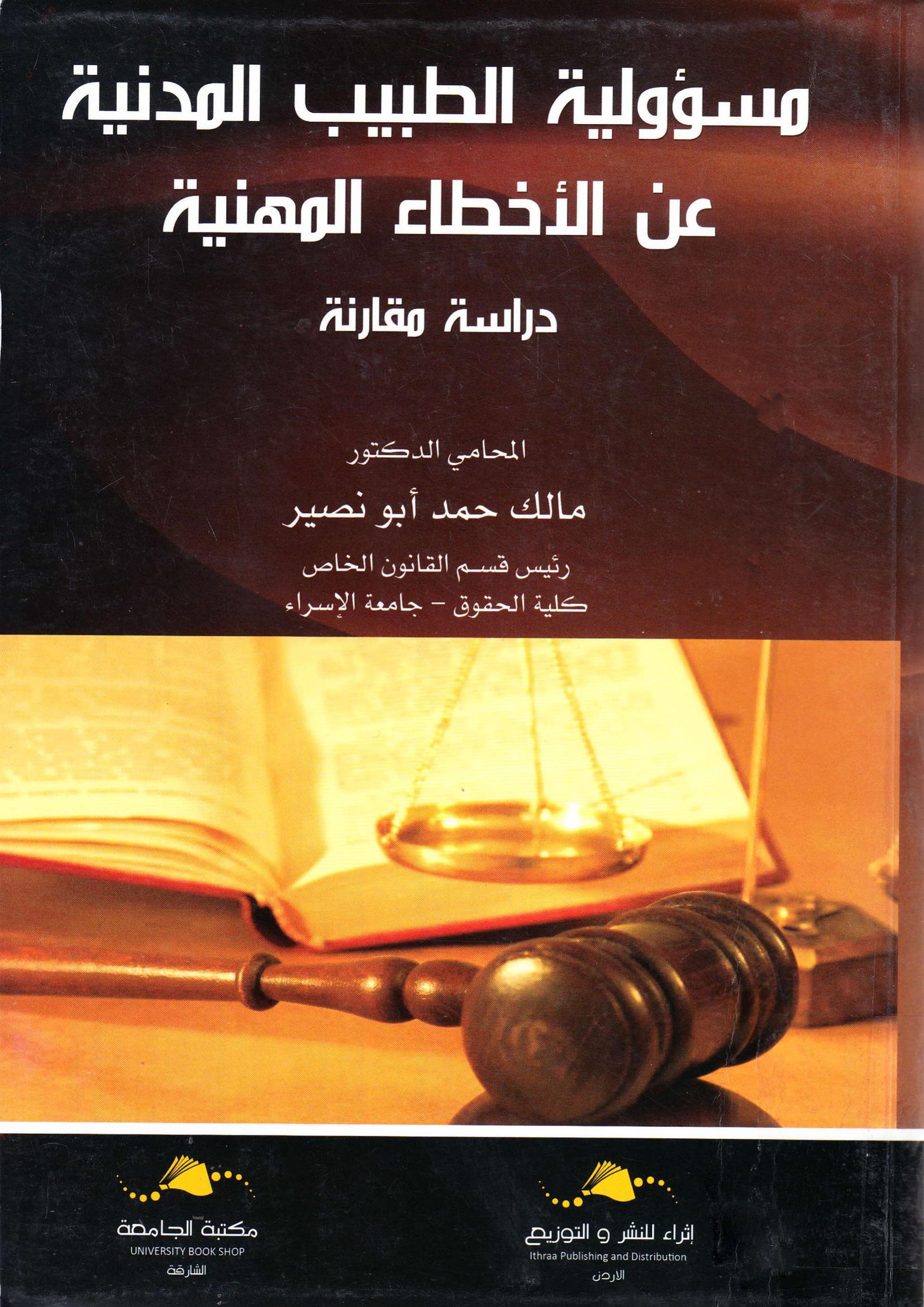 مالك حمد أبونصير (2019). مسؤولية الطبيب المدنية عن الاخطاء المهنية (ط.1) . دار إثراء للنشر والتوزيع;
