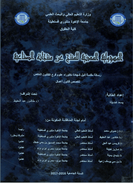 يسعد فضيلة & طاشور عبدالحفيظ ( مشرفا ومقررا ) (2017). المسؤولية المدنية للمنتج عن منتجاته الصناعية (دكتوراه.) . قسنطينة.