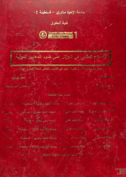 بن لعريبي راضية & طاشور عبدالحفيظ ( مشرفا ومقررا ) (2019). الإصلاح العقابي في الجزائر على ضوء المعايير الدولية (دكتوراه) .