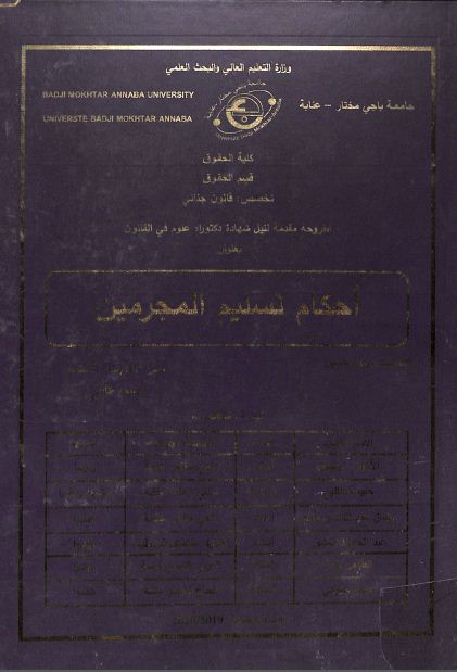 ميلود حسين & طالبي حليمة (مشرفا و مقررا) (2020). أحكام تسليم المجرمين (دكتوراه) . عنابة.