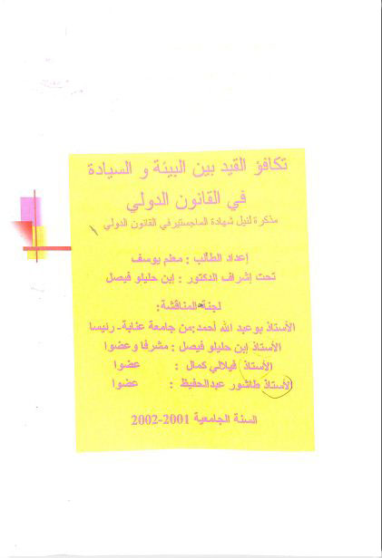 معلم يوسف & ابن حليلو فيصل(مقررا ومشرفا) (2002). تكافؤ القيد بين البيئةوالسيادة في القانون الدولي (ماجستير) . قسنطينة.