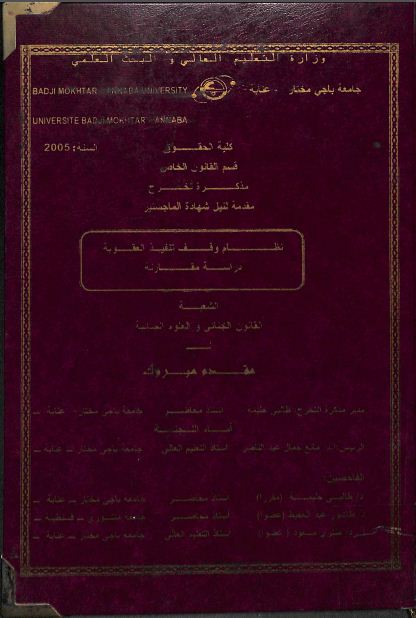 مقدم مبروك & طالبي حليمة (مشرفا و مقررا) (2005). نظام وقف تنفيد العقوبة دراسة مقارنة (ماجستير) . عنابة.