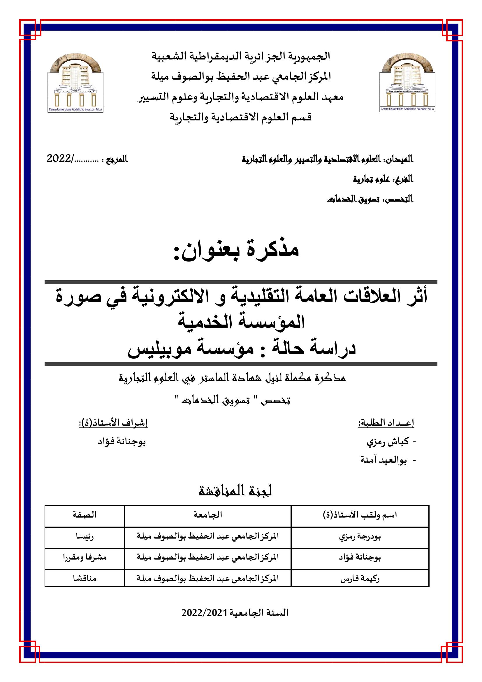 أثر العلاقات العامة التقليدية و الالكترونية في صورة المؤسسة الخدمية دراسة حالة مؤسسة موبيليس