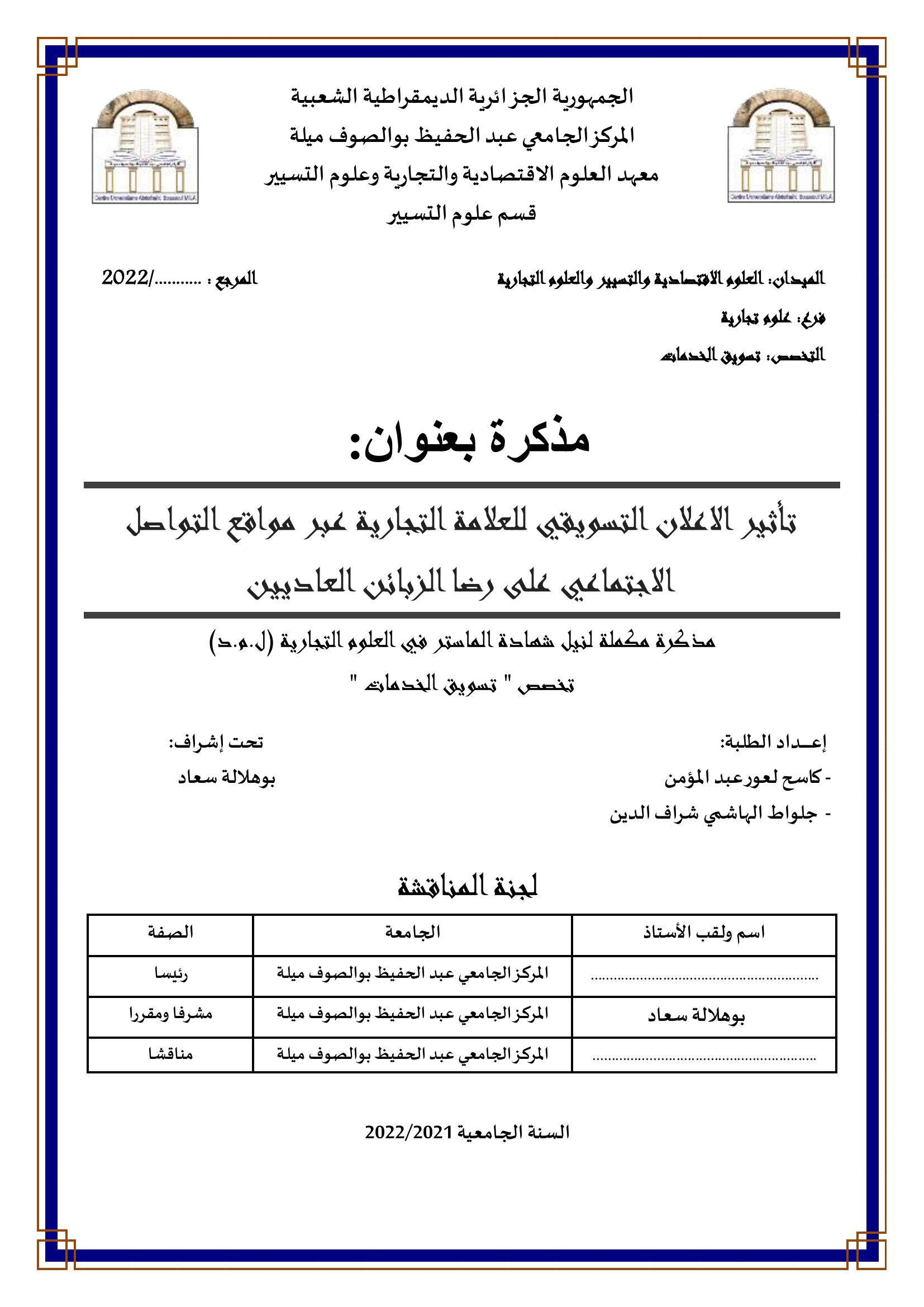 كاسح لعور عبد المؤمن et al. (2022). تأثير الاعلان التسويقي للعلامة التجارية عبر مواقع التواصل الاجتماعي على رضا الزبائن العاديين.